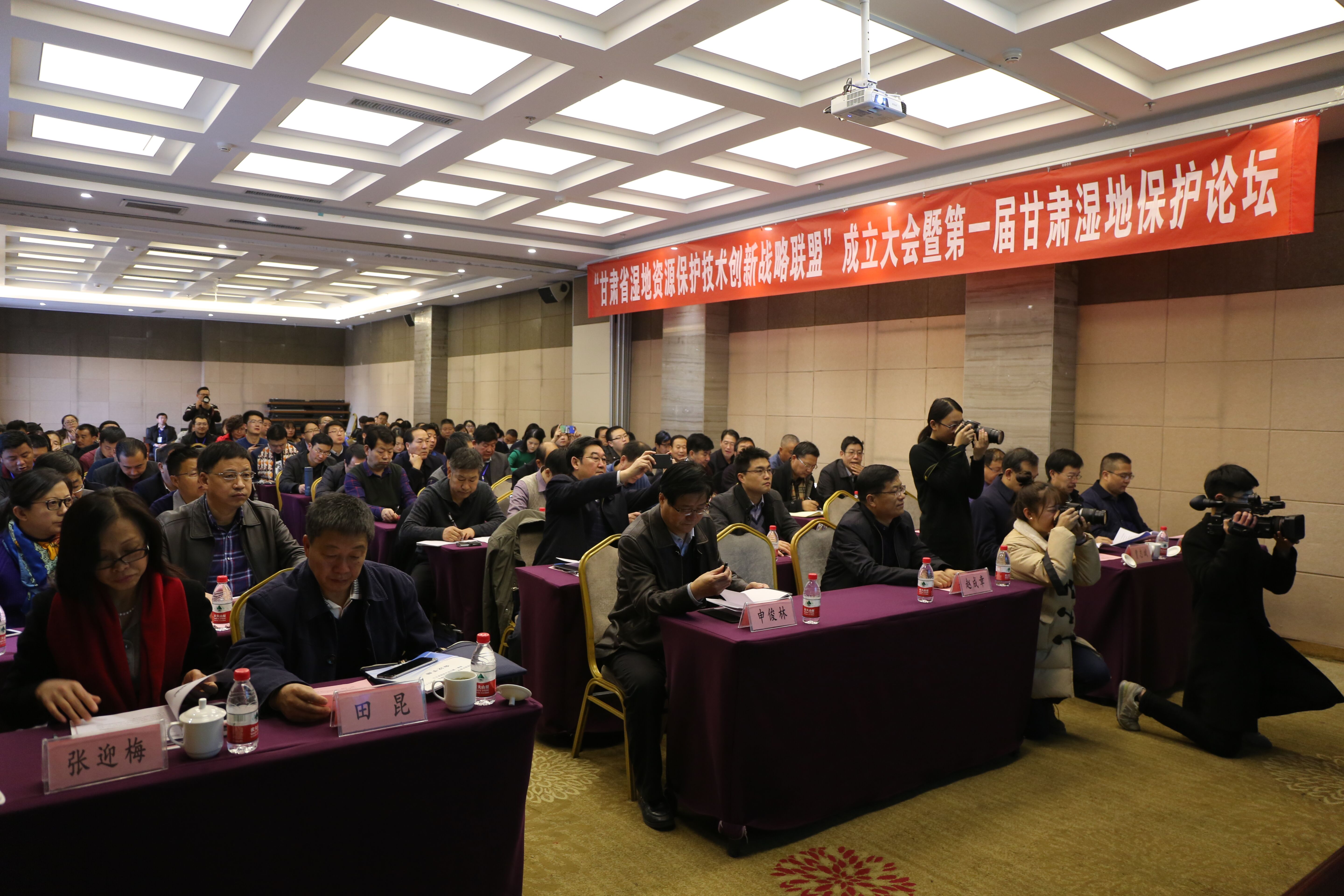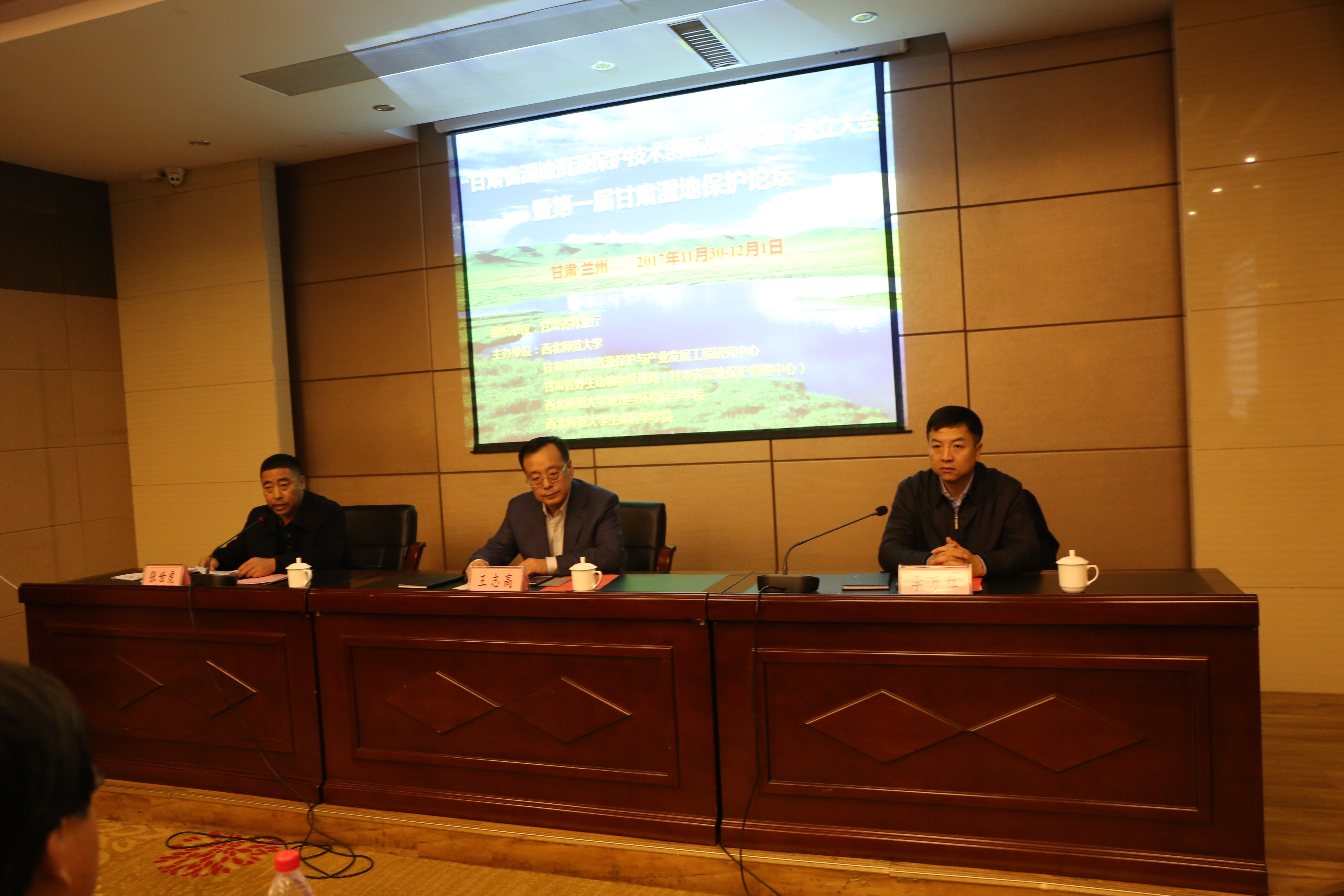 为深入学习党的十九大精神,贯彻落实中央关于生态文明建设的总体部署,树立“协同创新、开放共享”的湿地保护和发展理念,形成产学研相结合的湿地资源保护合力,构建较为完善的湿地保护管理与技术创新体系,切实发挥甘肃省典型湿地生态系统的整体功能,促进甘肃省湿地资源的协调可持续发展,经甘肃省林业厅批准(甘林发[2017]114号)成立“甘肃省湿地资源保护技术创新战略联盟”,并于11月30日-12月1日举行了“甘肃省湿地资源保护技术创新战略联盟”成立大会暨第一届甘肃湿地保护论坛。大会由甘肃省林业厅组织,由西北师范大学、甘肃省湿地资源保护与产业发展工程研究中心、甘肃省野生动植物管理局(甘肃省湿地保护管理中心)、西北师范大学必赢766net手机版、西北师范大学生命科学学院主办。国家林业局湿地保护管理中心主任王志高同志、西北师范大学副校长李万红同志、国家高原湿地研究中心常务副主任(西南林业大学)田昆教授;兰州大学生命科学学院张迎梅教授出席此次会议;参会人员还有省林业厅保护处、省湿地保护管理中心、西北师范大学科技处、科研合作服务处、生命科学学院、必赢766net手机版的领导和专家,省生态环境监测监督管理局、省林业科学研究院、白龙江林业科学研究所的领导、专家以及各市(州)林业(农林、生态建设管理)局、兰州新区农林水务局、张掖市湿地局、湿地类型自然保护区和国家湿地公园的主管领导和业务人员,以及高校教师和研究生等120余人。