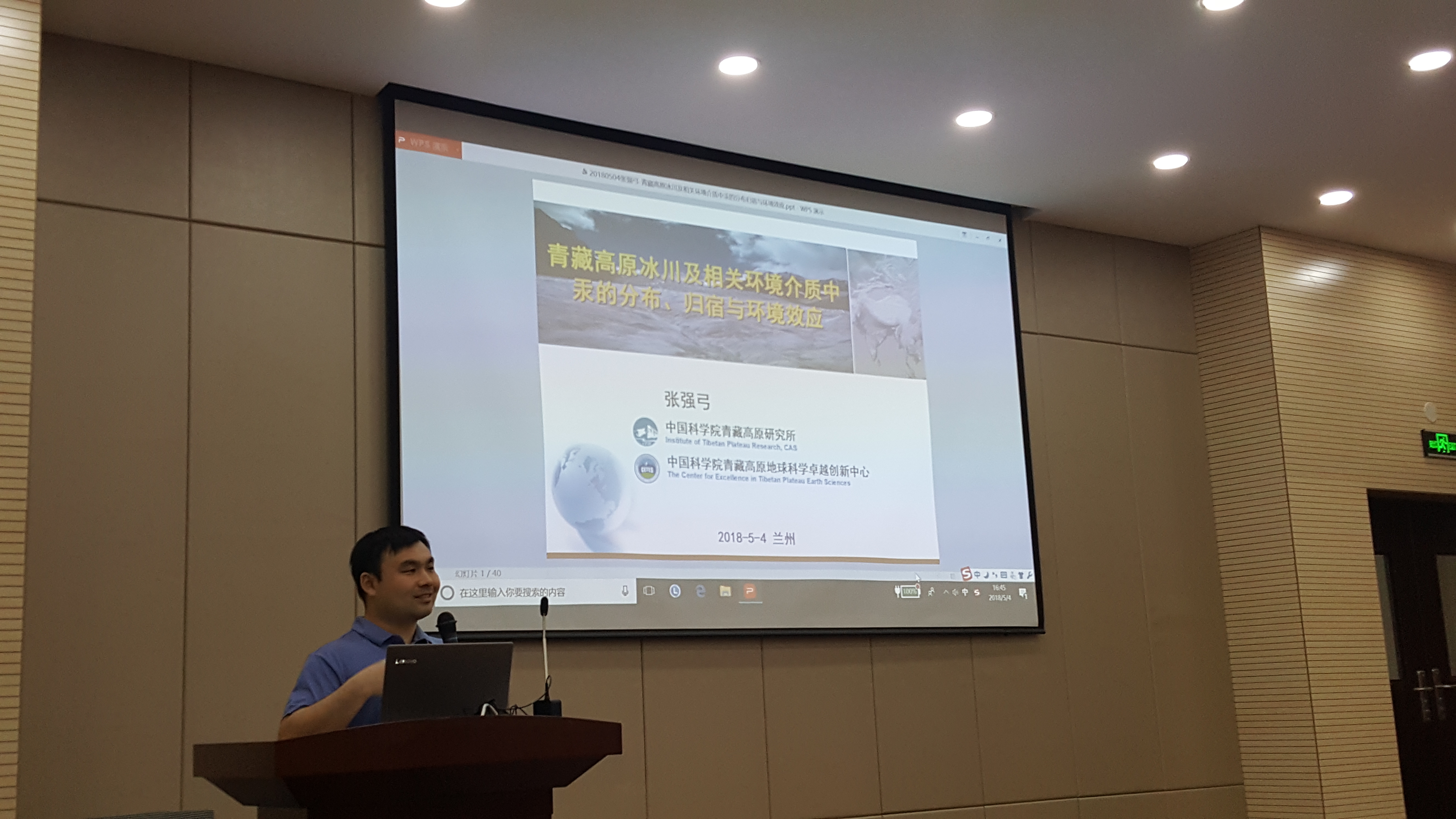 张强弓副研究员就其在冰川中汞分布特征和赋存、冰川融水径流汞传输过程、湖泊汞分布、水生生态系统汞富集特征等方面的最新研究成果与参会师生进行了分享。