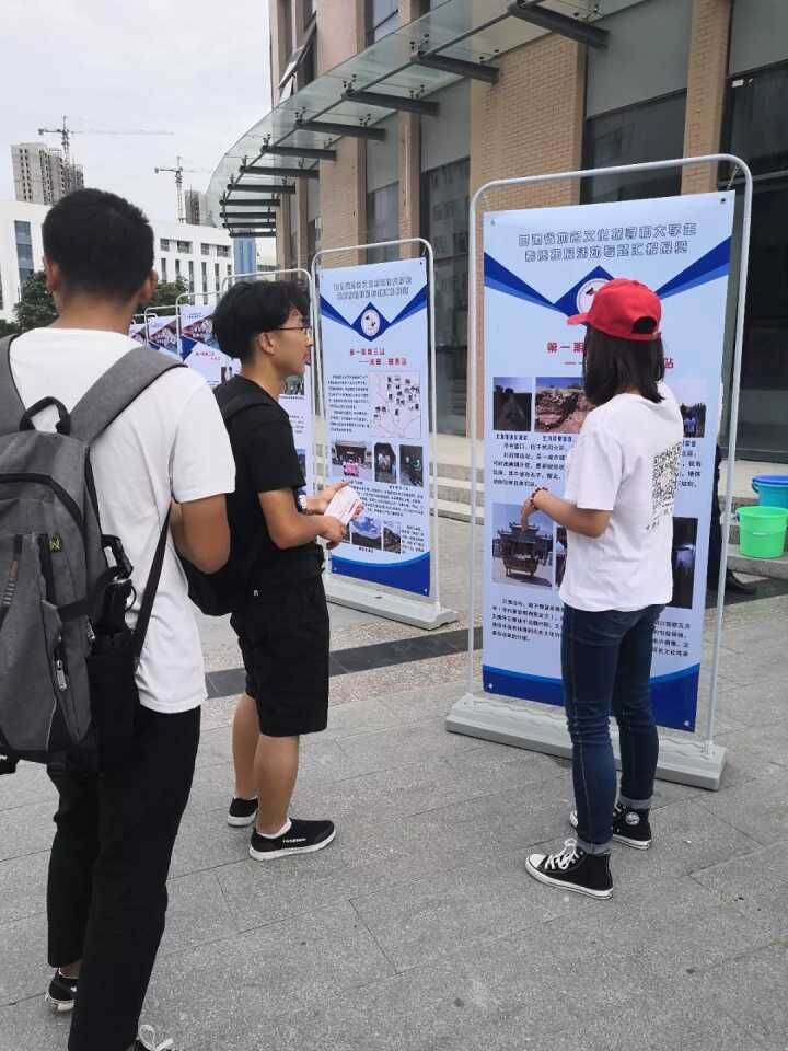 活动中,多名在校老师和同学参观了此次汇报展览,团队学员与参展的老师同学们进行愉快的交流讨论,为他们讲述了本次暑期地名文化探寻活动过程中的趣闻和收获,引起了他们对地名文化的浓厚兴趣,在展板前驻足许久。