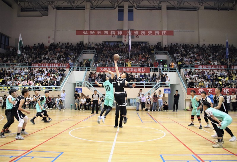 4月21日晚,校体育馆内喧腾鼓舞,历时一个多月的“董守义杯”篮球赛决赛火热开战,我院男篮与数学与统计学院巅峰对决,争夺冠军。