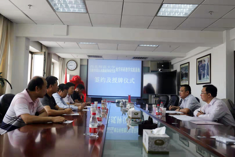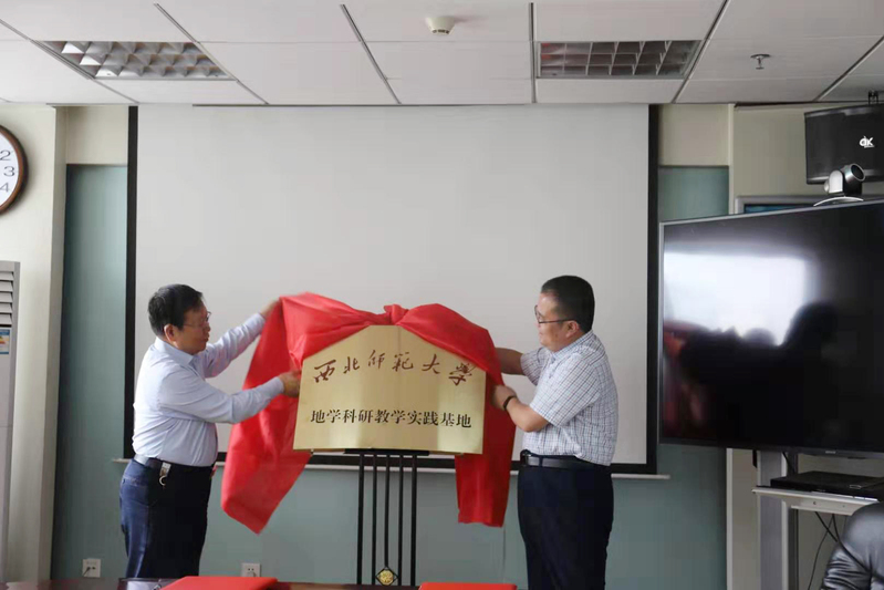 最后,刘贤德院长和张明军院长分别代表甘肃省祁连山水源涵养林研究院和西北师范大学必赢766net手机版签订了《科研教学实践基地建设合作框架协议书》,并共同为“西北师范大学地学科研教学实践基地”揭牌。