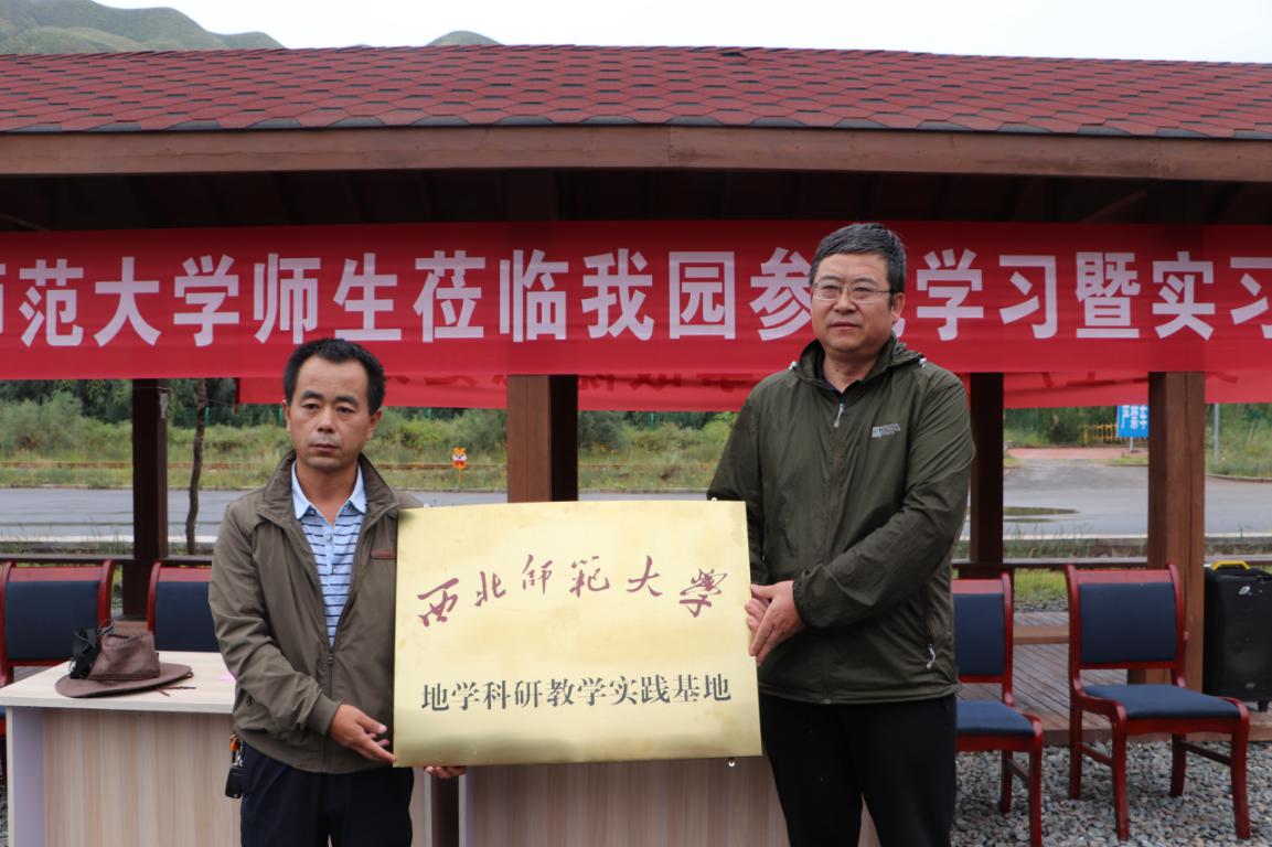 授牌仪式上,辛存林教授简要介绍了学院地学发展情况,并从地学野外实习、学生技能培养、地质公园建设等方面阐述了双方合作的重要意义,希望双方建立起稳固、长期的合作关系。尤文泽馆长认为,科研教学实践基地的建立将进一步助推地质公园的科普、教育、宣传,有利于挖掘刘家峡恐龙足印的科研价值。