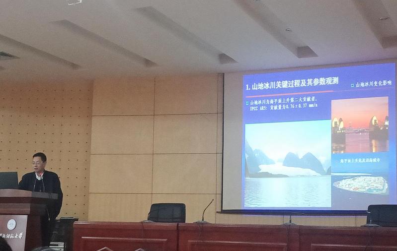 2019年12月6日,应必赢766net手机版邀请,新疆天山冰川国家野外科学观测研究站李忠勤研究员来我校进行学术交流,并做题为《干旱区冰川与水资源》的学术报告会,会议由张明军院长主持,学院120余名师生参加。