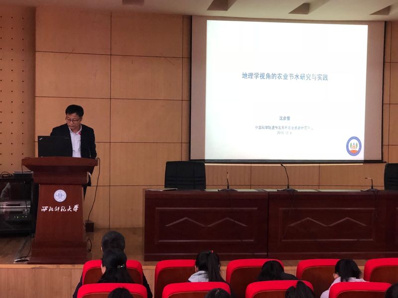 2019年12月6日,应必赢766net手机版邀请,中国科学院遗传发育所农业资源研究中心水资源与节水农业研究室沈彦俊研究员来我校进行学术交流,并做题为《地理学视角的农业节水研究与实践》的学术报告会,会议由张明军院长主持,学院120余名师生参加。