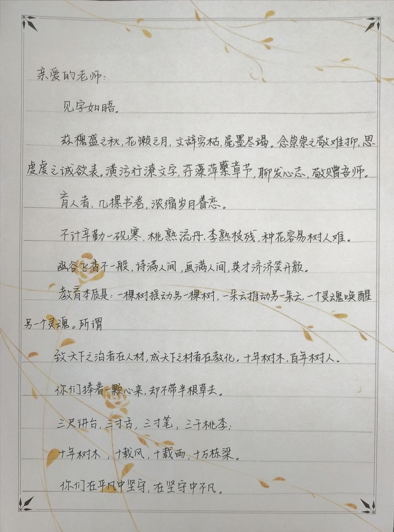 教师节来临之际,学院学生手写书信一封,诚祝各位老师教师节快乐!