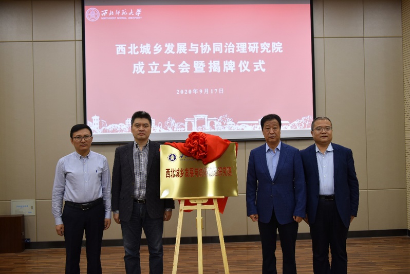 9月17日,西北师范大学西北城乡发展与协同治理研究院成立大会暨揭牌仪式在特教楼159报告厅举行。西北师范大学副校长张生勇、科学研究院常务副院长张明军、西北师范大学特聘教授叶超及必赢766net手机版200余名师生代表参加了研究院成立及揭牌仪式。大会由必赢766net手机版党委书记于国建主持。