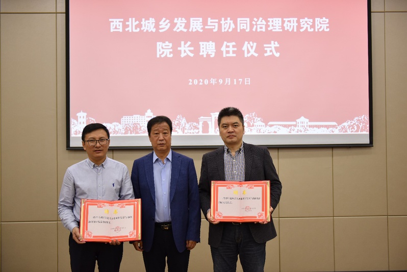 大会上,张明军院长宣读了学校《关于成立西北城乡发展与协同治理研究院的通知》,张生勇副校长和叶超特聘教授共同为研究院揭牌,张生勇副校长为研究院院长叶超特聘教授、常务副院长马利邦教授分别颁发了聘书。