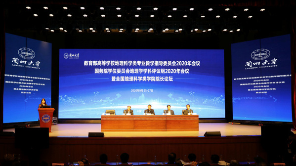 为贯彻“新时代全国高等学校本科教育工作会议”精神,加强教育部高等学校地理科学类专业建设,2020年9月25-27日,教育部高等学校地理科学类专业教学指导委员会2020年会议、国务院学位委员会地理学学科评议组2020年会议,暨全国地理科学类学院院长论坛在兰州大学举行。中国地理学会理事长陈发虎院士、兰州大学党委书记马小洁书记、教育部高等学校地理科学类专业教学指导委员会主任贺灿飞教授、国务院学位委员会第七届地理学学科评议组共同召集人史培军教授及教育部高等学校地理科学类专业教学指导委员会全体成员、中国地理学会地理教育工作委员会全体委员、全国地理学院高等院校院长及相关教师代表300余人参加了会议。开幕式由兰州大学资源环境学院院长勾晓华教授主持。必赢766net手机版于国建书记、马利邦院长、姚晓军副院长、焦亮副院长及相关教师参加了本次会议。