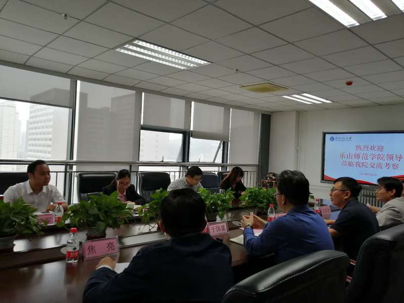 2020年9月24日下午,乐山师范学院旅游学院院长郭剑英教授、院长助理孙永兴副教授和科普基地主任武克军副教授等一行3人来我院交流调研。我院党委书记于国建、院长马利邦教授、副院长焦亮教授、王录仓教授、雒占福副教授及教师代表参加了交流调研活动。