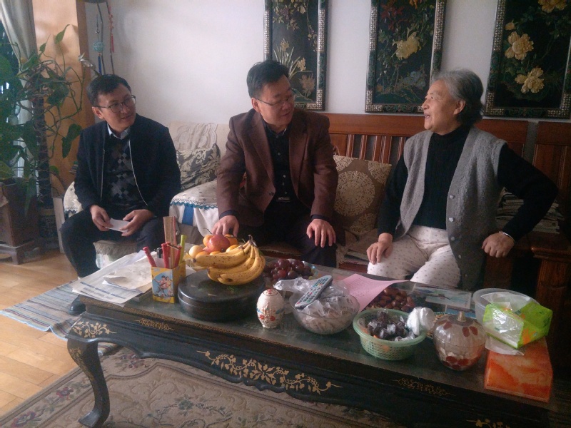 在退休老教师张慰祖、马瑞俊夫妇家中,学院领导与他们促膝交谈,一起回忆学院发展的历程和几十年来对教学生涯的感受和怀念。