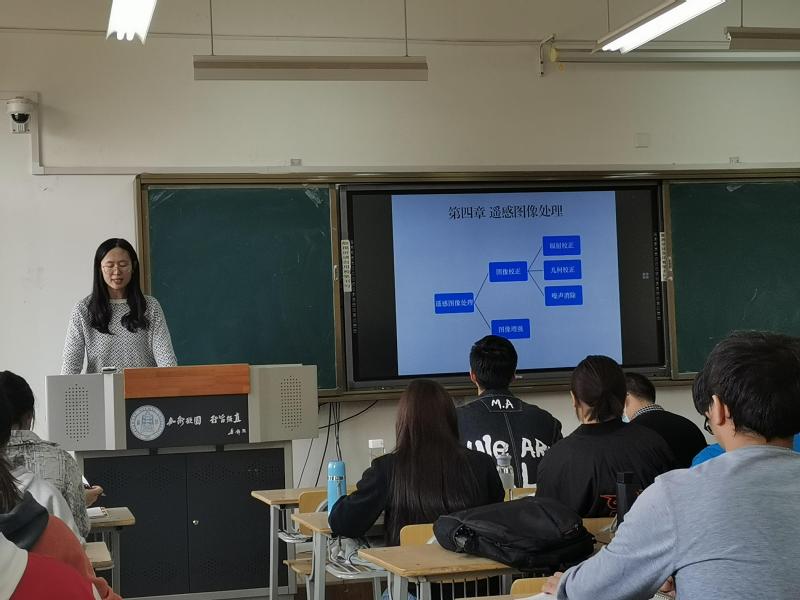 启动仪式后,学院领导、比赛评审专家组成员听评了学院青年教师修丽娜主讲的《遥感概论》课程。