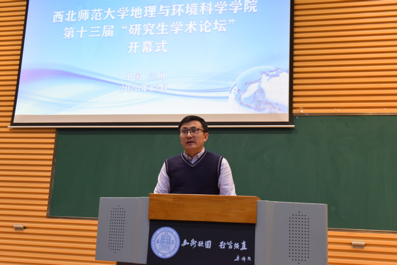 本届研究生学术论坛开幕式在毅然第一报告厅举行,西北师范大学学位办主任/研究生院副院长赵军教授、《冰川冻土》期刊武俊杰编辑、中科院西北生态环境资源研究院文莉娟研究员、兰州市第一中学郭亚明高级教师、西北师大附中周河昌高级教师、学院党委书记于国建、院长马利邦、副院长焦亮出席,开幕式由学院副院长姚晓军主持。