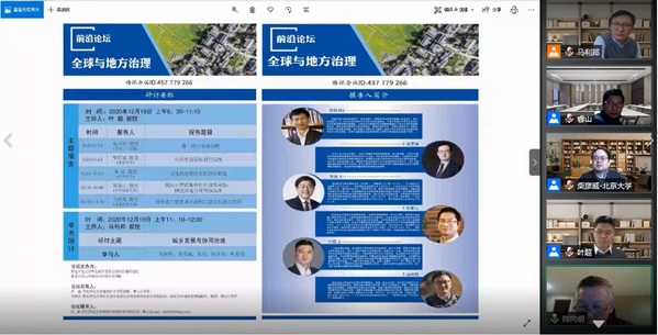 2020年12月19日,由西北师范大学西北城乡发展与协同治理研究院和地理与环境科学学院联合举办的首届西北城乡发展与协同治理研究院前沿论坛在线召开。论坛以“全球与地方治理”为主题,由西北师范大学西北城乡发展与协同治理研究院院长叶超教授主持,来自国内外的320余师生在线参加了此次论坛。