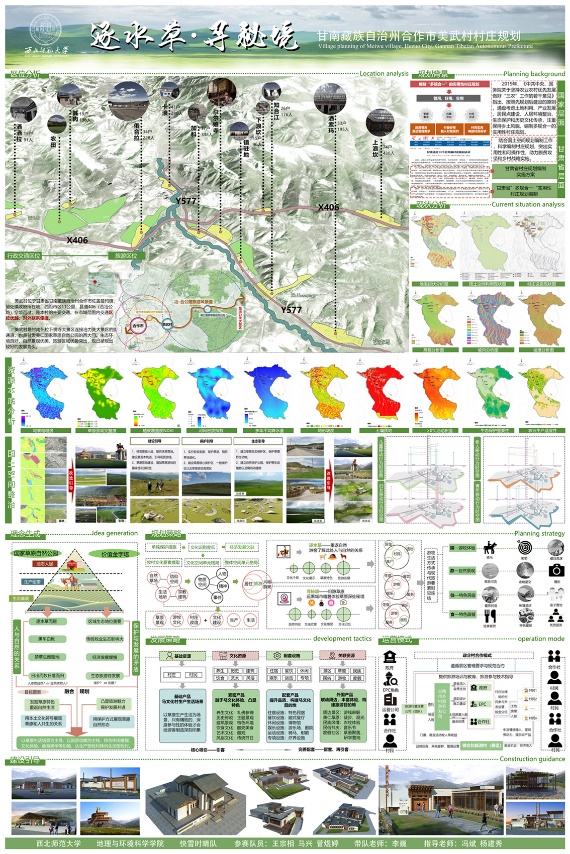 2021年6月19日,博雅达杯第四届全国大学生国土空间规划技能大赛在中国矿业大学举行。由我院李巍老师带队,杨建秀老师、冯斌老师,方浩舟同学指导,本科生王宗相、马兴、菅煜婷等三位同学完成的规划作品《逐水草•寻秘境——甘南藏族自治州合作市美武村村庄规划》,荣获全国总决赛三等奖。