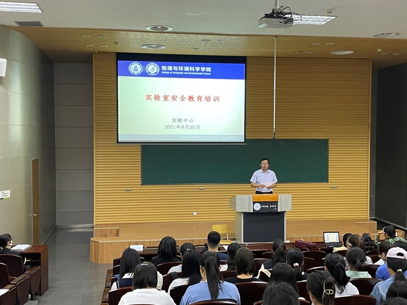 9月25日上午,必赢766net手机版2021年秋季学期实验室安全教育培训会在新校区教学楼第一报告厅举行。学院副院长焦亮、实验中心主任王继伟、实验中心老师张萍、张东霞、王晨雯,2021级地理科学和环境科学研究生、本科生以及新入职的教师共300多人参加了本次培训会。会议由学院焦亮副院长主持,三名实验中心老师分别以《实验室安全与环保知识通识教育》《实验室安全之危化品管理》《实验室主要仪器、设备和安全使用》为题对师生进行了培训。