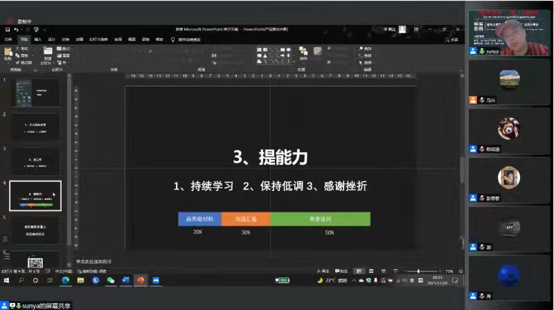 本次会议由我院李巍老师和杨建秀老师召集,2018级学生马兴主持,会议邀请了我院2017届本科毕业生项顺垚,2018届本科毕业生彭勇智,2020届硕士毕业生陈绍涵三位同学给大家分享有关求职就业的经验,并在会后为同学们就相关问题进行了答疑解惑。
