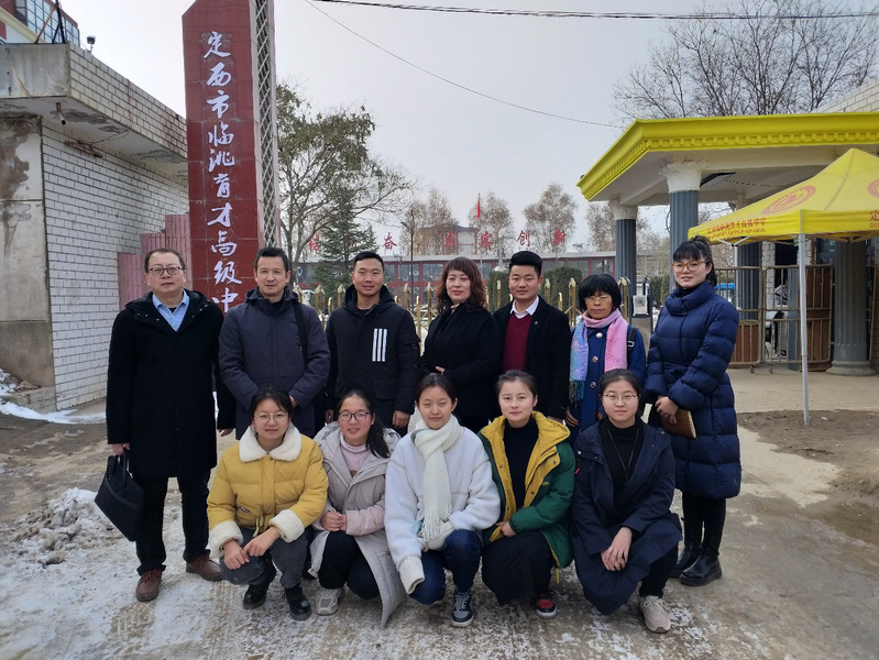 在教务处统一安排下,学校教学督导陈祥恩教授、学院院长助理张学斌副教授、教务秘书杨婷老师、实习指导教师连菊霞老师一行4人于2021年12月2日赴定西市临洮县育才高级中学,代表学校检查指导教育实习工作、慰问教育实习学生。临洮育才高级中学校领导陪同检查慰问。