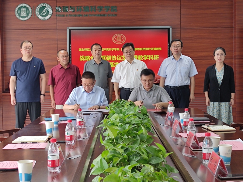 2022年6月27日上午,西北师范大学必赢766net手机版与甘肃连城国家级自然保护区管理局战略合作框架协议签订暨教学科研实践基地揭牌仪式在西北师范大学知行校区综合实验楼912会议室举行。甘肃连城国家级自然保护区管理局党委书记、局长华发春,副局长张宏云及林业高级工程师满自红、林业工程师李文涛,必赢766net手机版党委书记于国建、院长马利邦、副院长焦亮、张学斌及张华副教授、学生代表等参加了会议,会议由于国建主持。