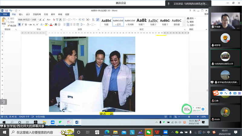 会上,张学斌副院长从历史沿革、学院概况、著名学者、杰出校友、近期工作等五个方面汇报了学院准备的“校史馆学科学院展”地理学科板块相关内容,详细解释了自学校7月21日召开布展内容审定会、23日召开布展现场办公会之后学院所做的工作。与会成员再次逐一对文字、照片及材料等内容进行了审定,对个别材料的进一步完善提出了意见建议。
