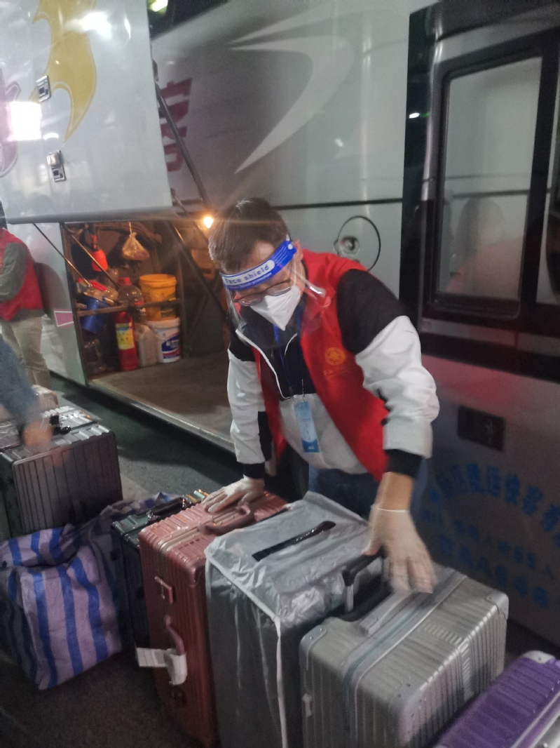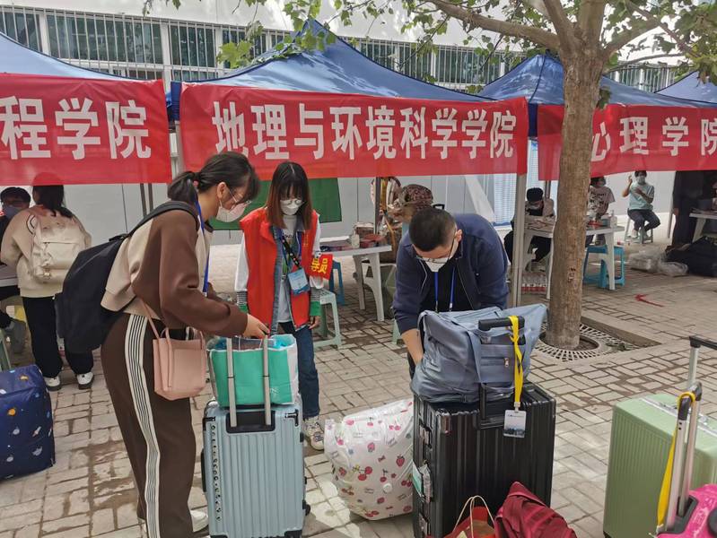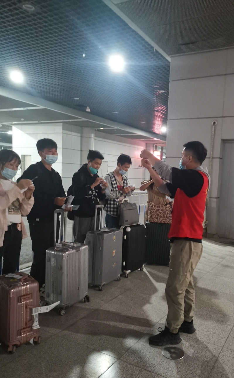 新生班主任王圣杰老师、冯斌老师、李浩杰老师、王祥老师志愿参加了新生迎新工作。他们到机场接站迎新,在学生公寓承担了行李照看搬运、分发迎新用品,道路指引以及提醒学生做抗原与核酸检测等具体工作,以实际行动织密了疫情防控之下新生入校报到的“温情之网”。