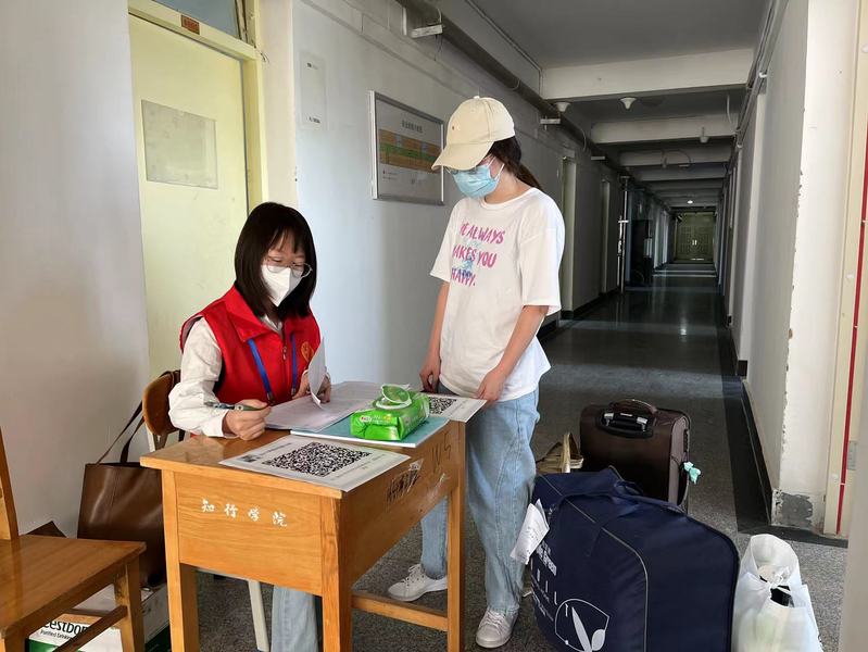 辅导员老师们热心地给新生讲解入学报到流程及注意事项,悉心提醒同学们出示健康码,佩戴好口罩,做好行李消杀、抗原检测、核酸检测等。他们一趟趟地为新生“跑腿”,从萌新手中接过大件行李,帮他们搬运到宿舍。在凌晨一两点,他们陪同迟来的新生一同等待核酸检测结果,直至入校在公寓住宿。他们微笑服务,用行动温暖了学生,获得了一致好评。