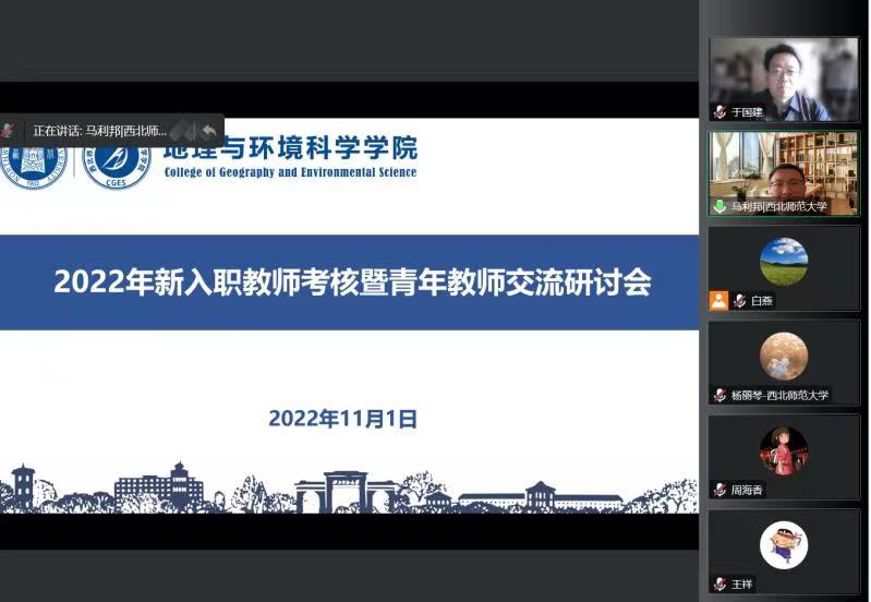 2022年11月1日下午,必赢766net手机版通过线上方式举行了“2022年新入职教师考核暨青年教师交流研讨会”。学院领导班子成员、学术委员会成员、教学督导委员会成员、系主任、部分教师以及近4年新入职的11名青年教师参加会议,会议由马利邦院长主持。