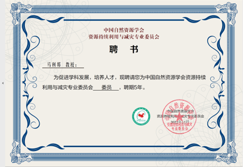 2022年11月19日,中国自然资源学会资源持续利用与减灾专业委员会换届会议在线上成功举行。本次会议是依据中国自然资源学会《关于同意资源持续利用与减灾专业委员会换届选举的批复》召开的。中国自然资源学会理事长成升魁研究员、副秘书长王捷出席了会议,来自全国各地的近百名代表参加了会议。在换届会议上,经无记名投票,选举产生了专委会主任、副主任、秘书长、副秘书长和委员。北京师范大学何春阳教授当选为专委会主任,学院马利邦教授、潘竟虎教授当选为委员,聘期5年。