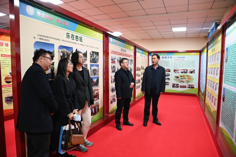 于国建一行还实地参观了白银市第十一中学校史馆、阅览室、社团教室等办学场所。