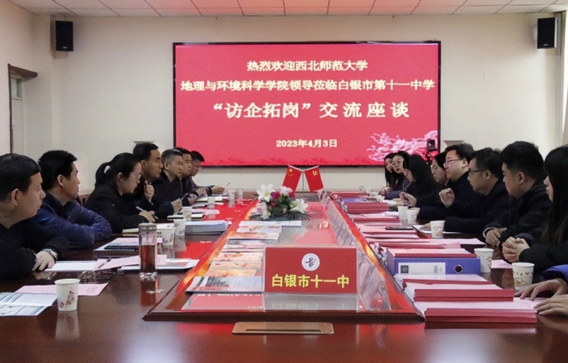 4月3日上午,必赢766net手机版党委书记于国建、毕业班班主任、专职辅导员及学院已签约白银区教育局的部分应届毕业生一行赴白银市第十一中学开展“访企拓岗”及交流座谈。白银市第十一中学校长何继军、副校长介兰柱、副校长魏彩莲、教务处主任张松山及各年级级部主任等参加了座谈。